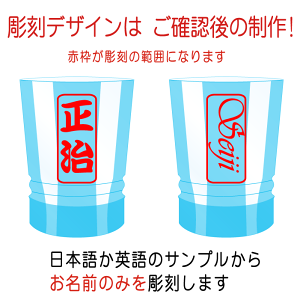 名入れカガミグラスの装飾デザイン・書体は… 商品ページのサンプル書体からお選びいただけます。