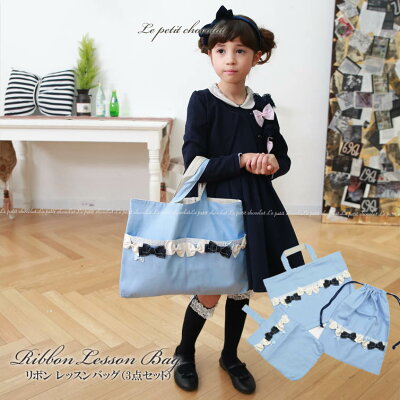レッスンバッグ 3点 セット 女の子 子供 日本製 リボン おしゃれ かわいい 入学 入園 グッズ サックス 水色 裏地 あり マチ付き ポケット 上履き入れ 入園バッグ お稽古バッグ シューズバッグ 体操服入れ 巾着 入学準備 ハンドメイド 【あす楽】