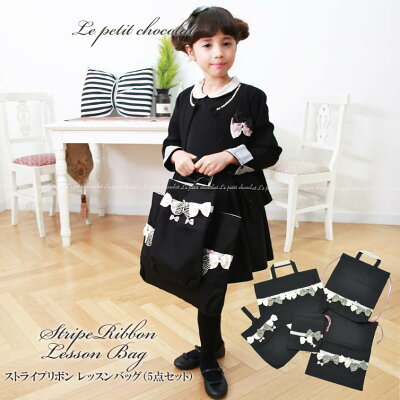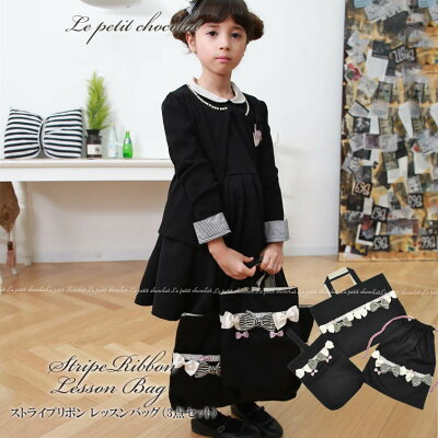レッスンバッグ 5点 セット 女の子 子供 日本製 ボーダー リボン おしゃれ 入学 入園 グッズ 黒 裏地 あり マチ付 ポケット 上履き入れ 入園バッグ お稽古バッグ シューズバッグ コップ袋 体操服入れ リュック ナップサック 巾着 入学準備 ハンドメイド 【あす楽】